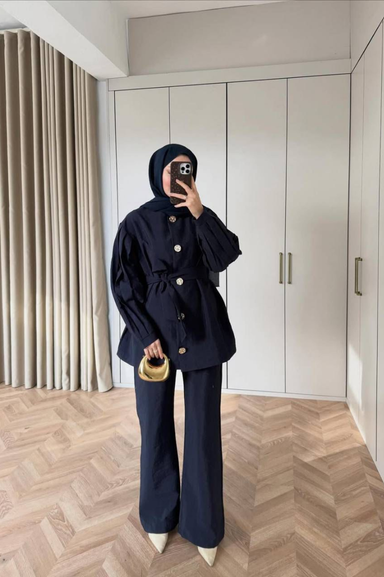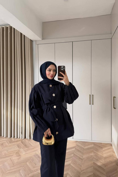 Weak Blue Siyah Kadın Tunik Ceket Düğmeli Uzun Kollu Modern Tesettür Giyim Şık Model