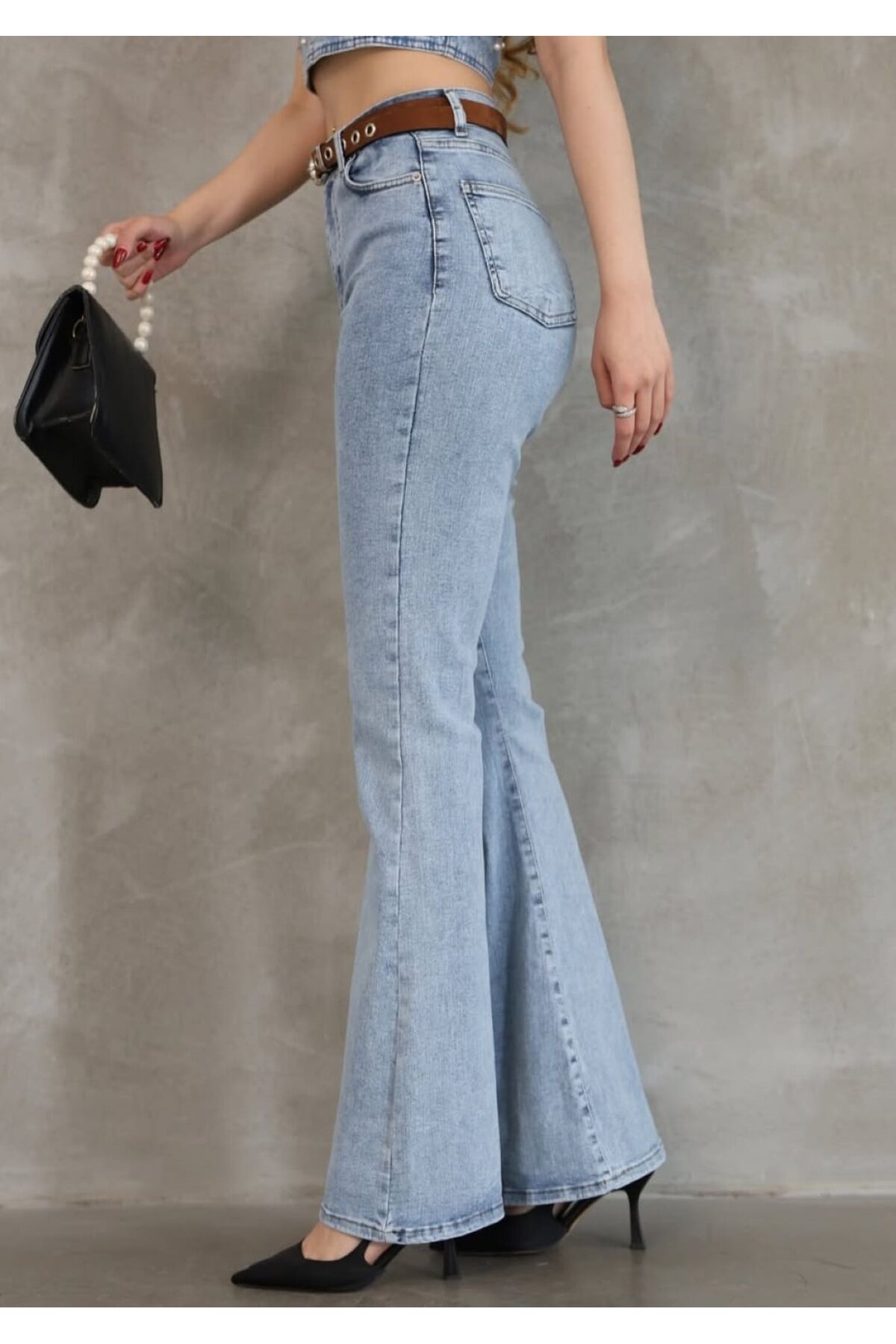 - Rahatlık ve şıklığı bir arada sunan yüksek bel İspanyol paça denim pantolon, tüm sezonlarda tercih edebileceğiniz bir parça.; - Full fermuar kapama özelliği ile kolay giyilip çıkartılabilir ve pratik kullanım sağlar.; - Düz dokuma kumaşı sayesinde dayanıklılık ve konforu ön planda tutar.; - Orta kalınlıkta denim kumaşı, mevsim geçişlerinde ideal bir seçimdir.; - 4 cep detayı günlük eşyalarınız için geniş saklama alanı sunarken, baskısız tasarımıyla sade bir görünüm kazandırır.; - Balık siluetiyle modern ve trend bir duruş sergilerken, genç tarza uygun tasarlanmıştır.; - Pamuk materyali cildinize nefes aldırırken, uzun boy kesimi ile bacakları olduğundan daha uzun gösterir.; - Yüksek bel tasarımı sayesinde vücut hatlarınıza mükemmel uyum sağlayarak zarif bir siluet oluşturur.; - Denim koleksiyonunun vazgeçilmez parçası olan bu pantolon, hem gündelik hem de özel gün kombinlerinizde rahatlıkla yer bulur.; - Astarsız yapısıyla hafiflik hissi verirken, pamuklu kumaşı sayesinde gün boyu konfor sunar.; - Trend ortamlarda dikkat çeken ispanyol paça detaylarıyla stil sahibi görünmenizi sağlar.;