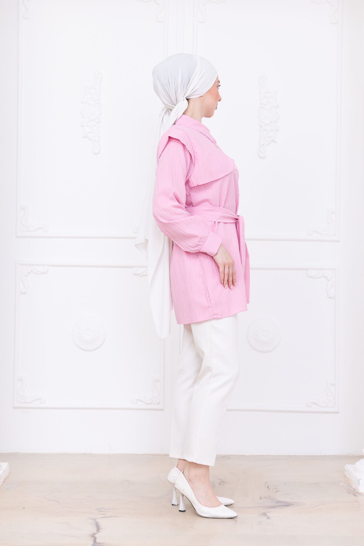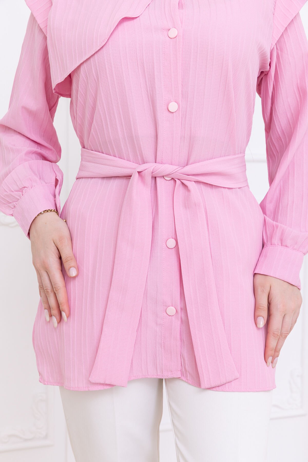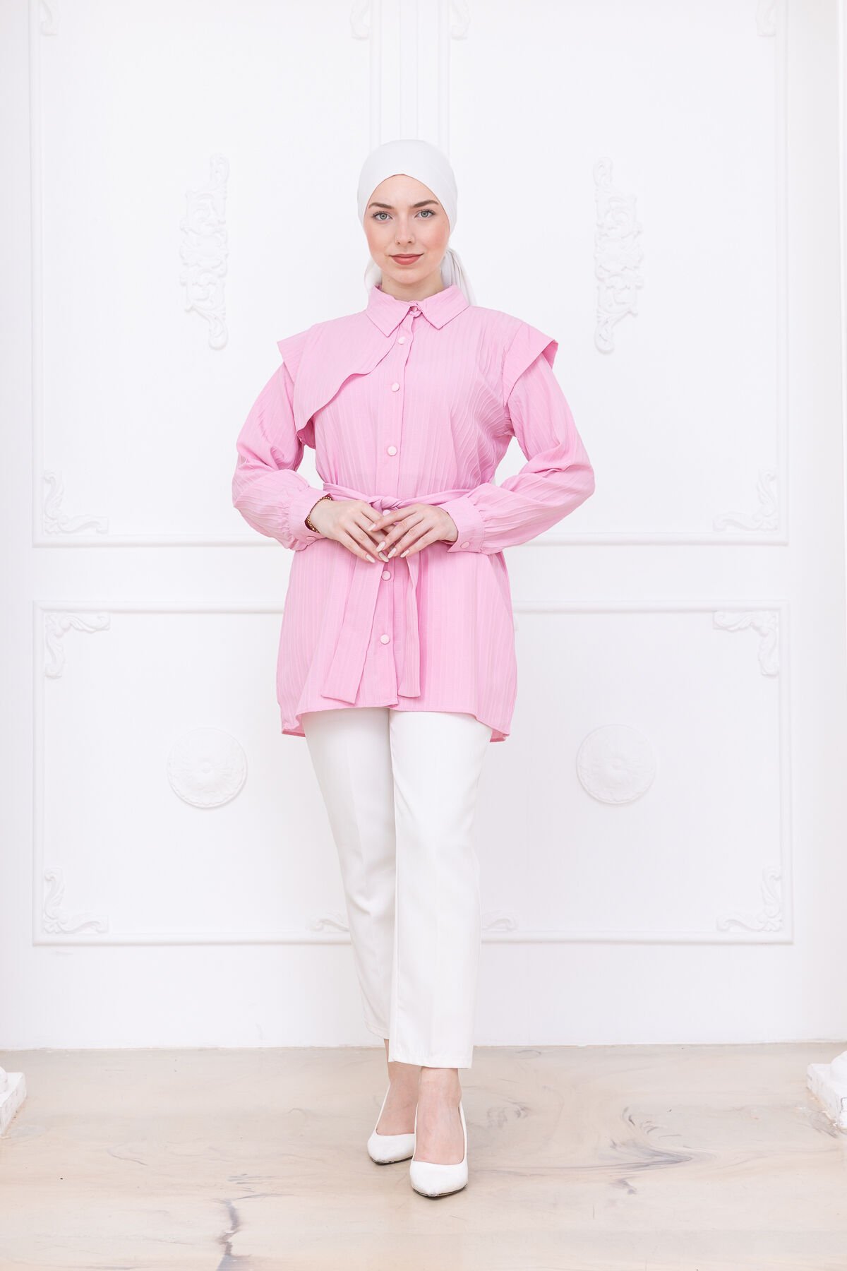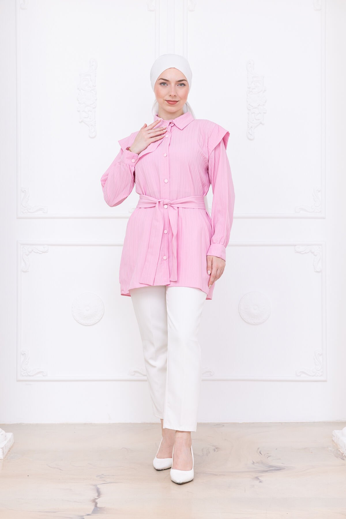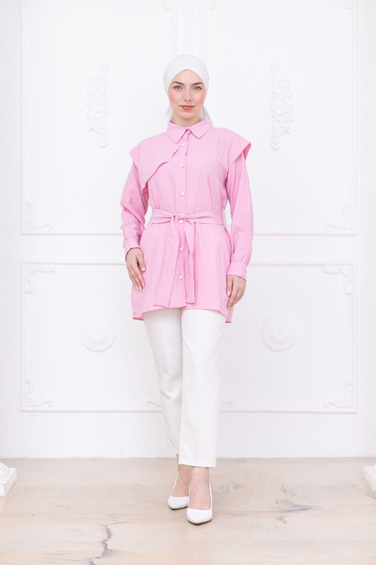 Kemerli Apolet Detaylı Tesettür Gömlek