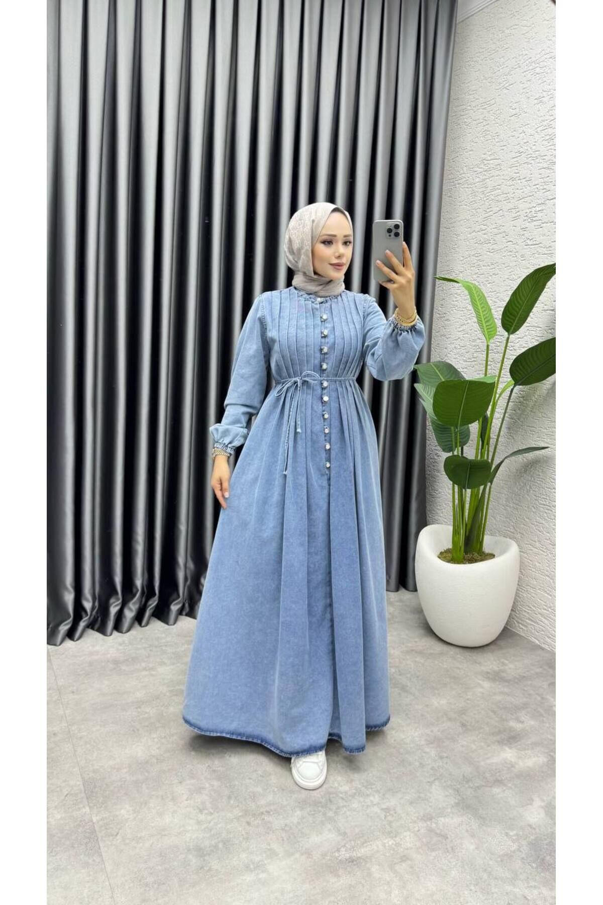 Yıkamalı Denim Kot Elbise