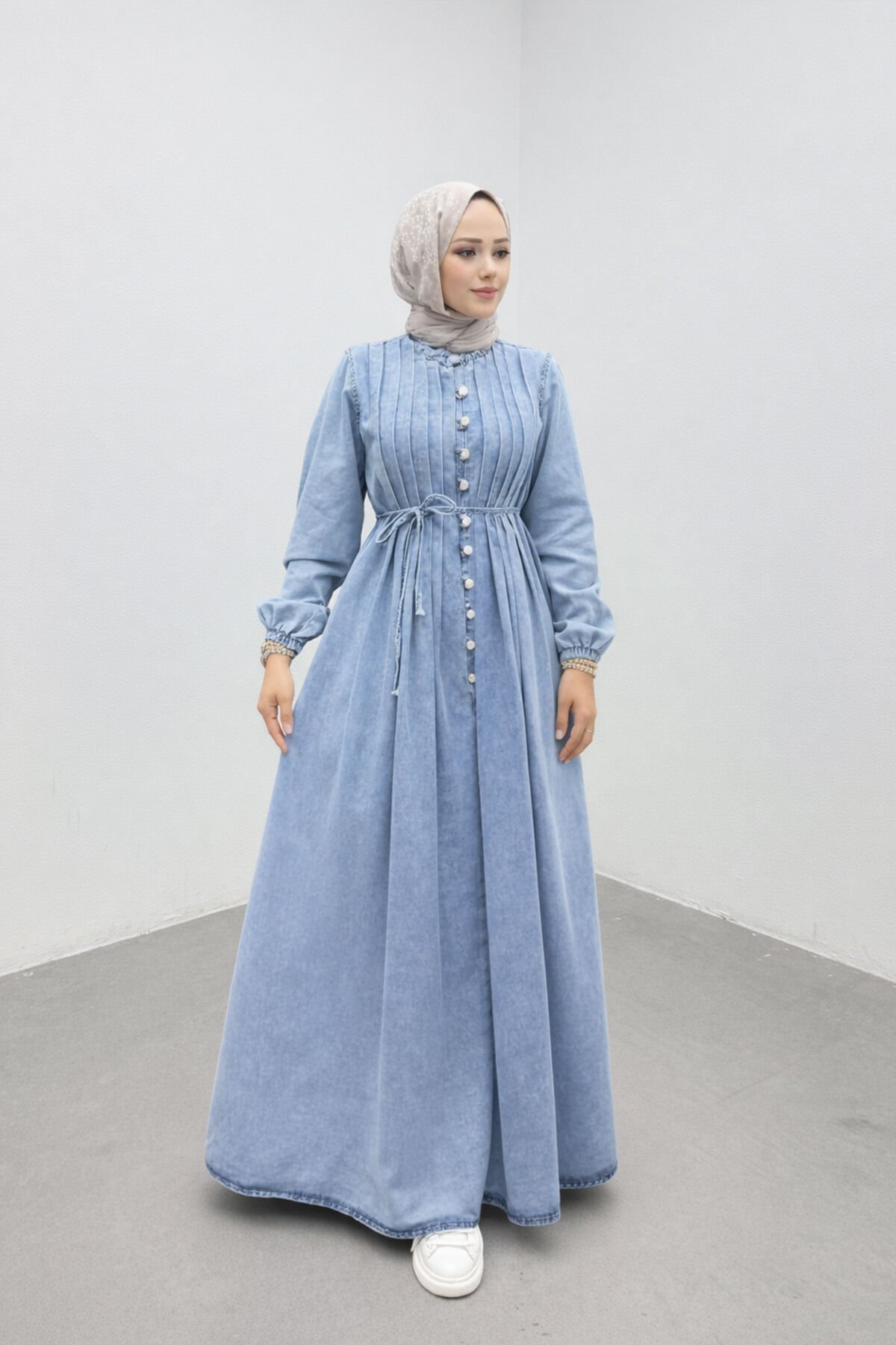 - Uzun kollu ve gömlek yaka tasarımı ile hem şıklığı hem de rahatlığı bir arada sunar.; - Canlı ve renkli deseniyle dikkat çekici bir görünüm sağlar.; - Mavi tonlarındaki denim kumaşı, günlük kullanım için idealdir ve kolayca kombinlenebilir.; - Uzun boyu sayesinde zarif bir siluet çizerken, rahat kalıbı gün boyu konforlu bir deneyim sunar.; - Cepsiz tasarımı ile minimalist bir stil vurgular ve aksesuar kullanımı için daha fazla alan yaratır.; - Relaxed kalıbı sayesinde vücut hatlarını saran ancak sıkmayan bir yapıya sahiptir.; - Astarsız yapısı sayesinde hafif ve nefes alabilen bir kullanım sunar.; - Casual ortamlar için uygun olan bu elbise, günlük şıklığınızı tamamlar.; - Kemer detayı belinizi vurgularken, feminen bir dokunuş ekler.; - Type 1 yıkama talimatına uygun şekilde kolayca temizlenebilir; böylece uzun süreli kullanım için idealdir.; - Kutu içermeyen gönderimiyle pratik ve çevre dostu bir alışveriş deneyimi sunar.; - Türkiye menşeli olmasıyla yerel üretim desteklenmiş olurken kaliteyi de garanti eder.